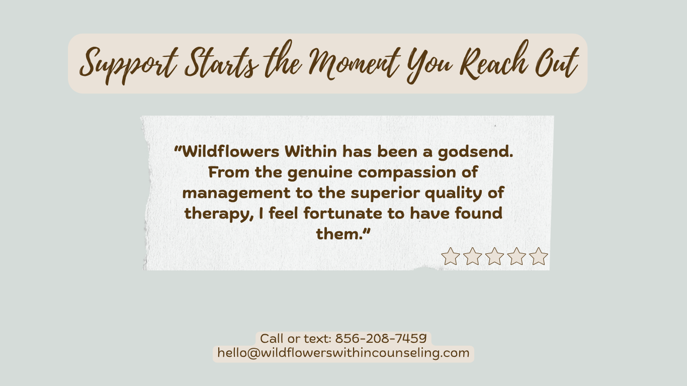 Because you deserve more than a waiting room, a clipboard, and a therapist who is watching the clock. Wildflowers Within was built because the mental health world needed something different.