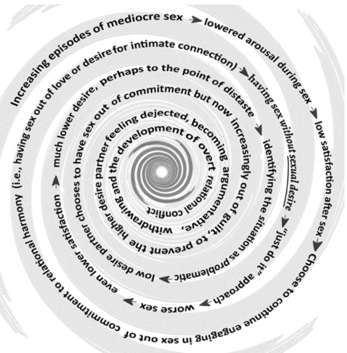 When intimacy begins to decline, couples often fall into what’s sometimes called the “sex death spiral.” One partner avoids intimacy out of stress, exhaustion, or fear of rejection, which leaves the other feeling unwanted and unseen. That hurt then creates even more distance, making intimacy feel pressured or unsafe. The longer this cycle continues, the harder it can feel to break free even though both partners long for connection.