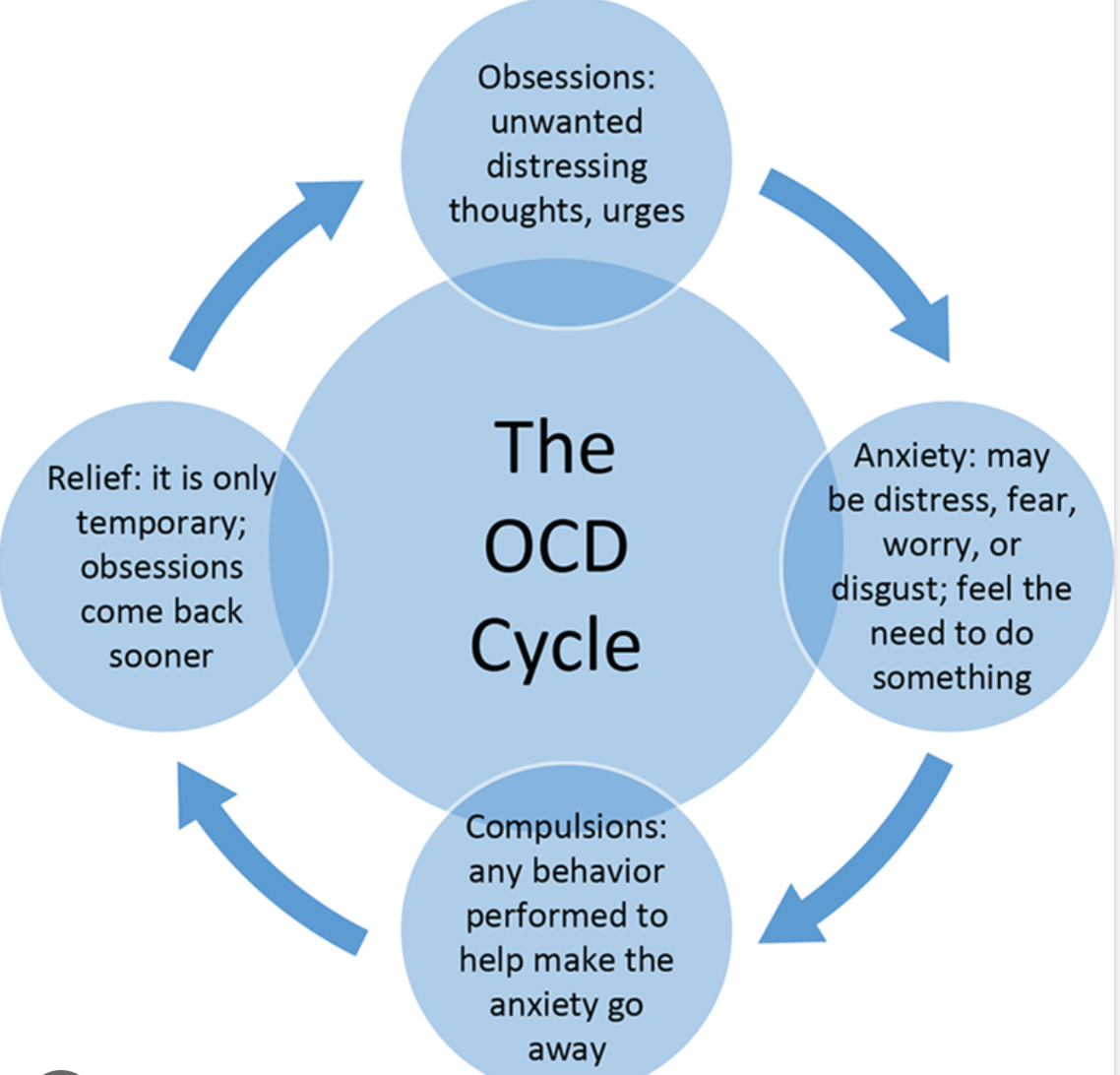 That’s the OCD cycle: Obsession → Anxiety → Compulsion → Relief → Repeat.